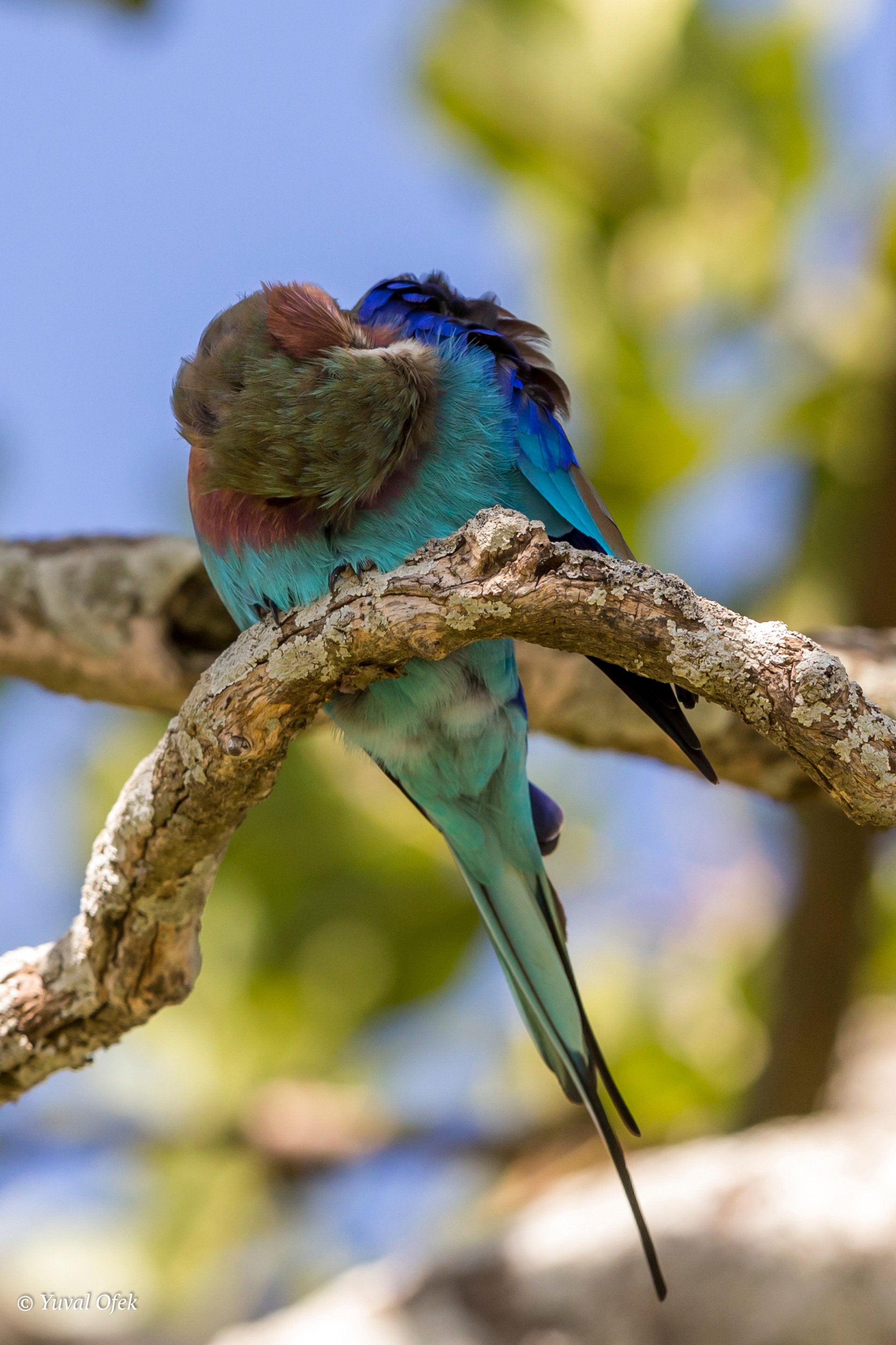 Lilac-breasted Roller preening