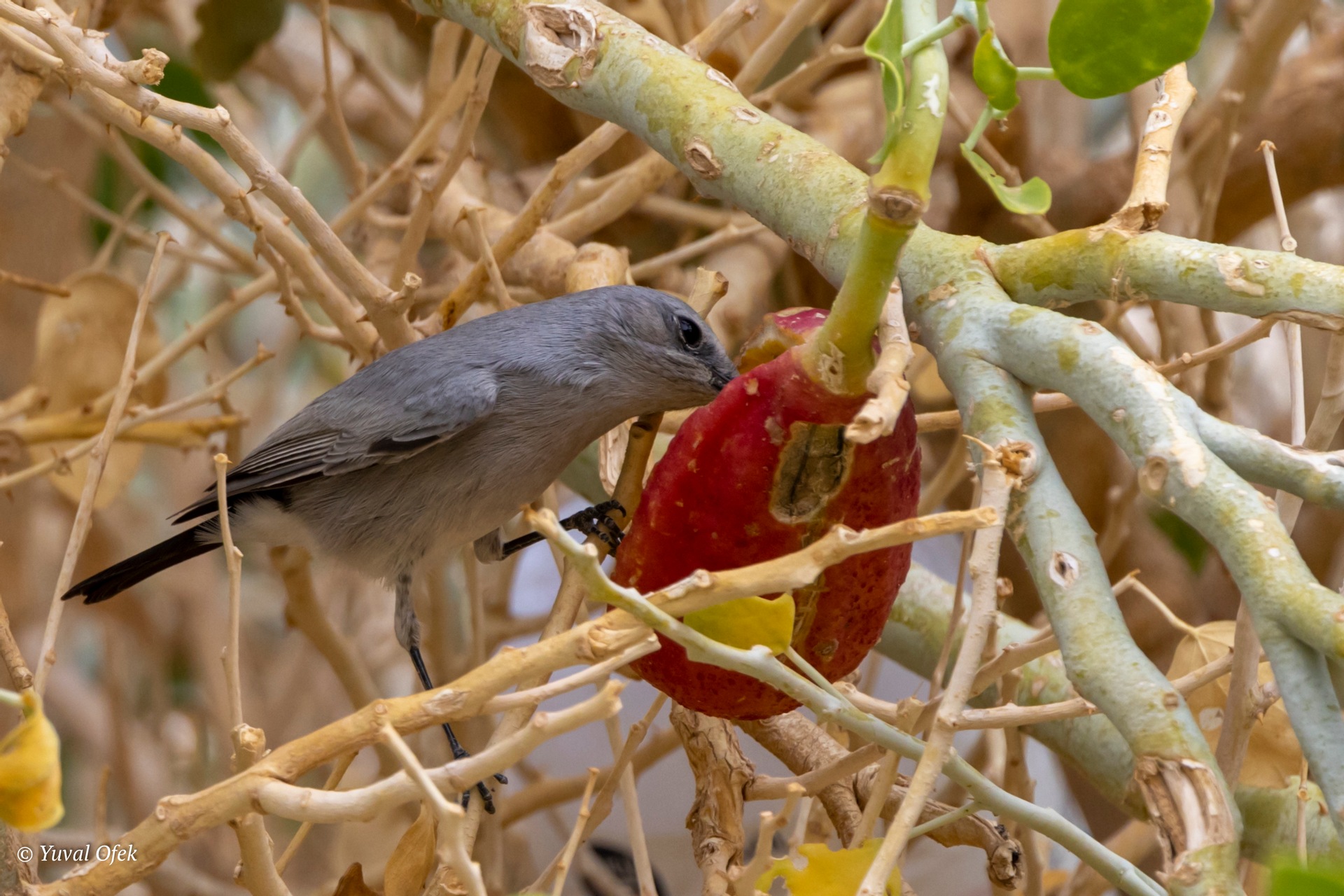Blackstart feeding on a ripe fruit of Capparis cartilaginea