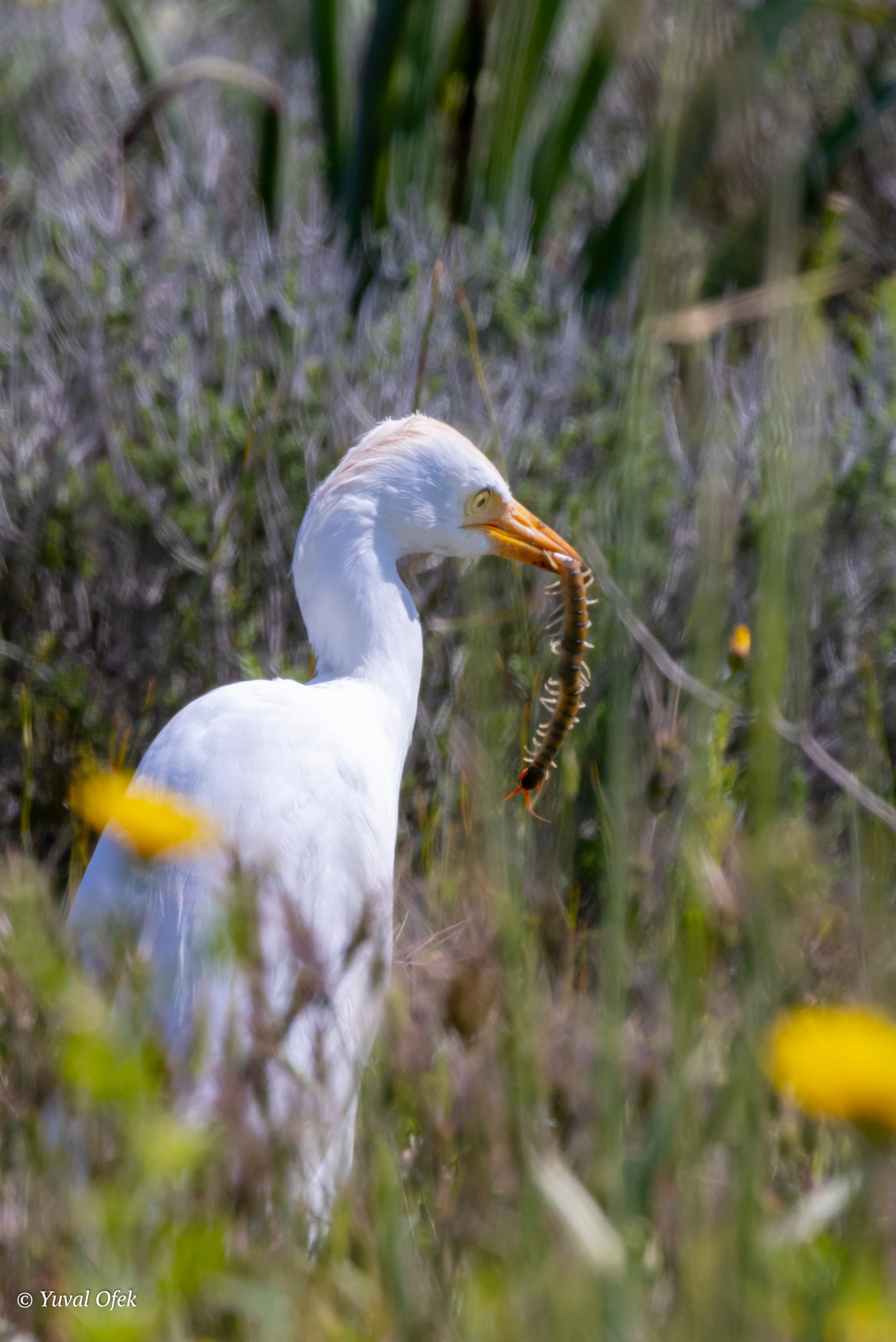 Cattle Egret caught a Megarian banded centipede