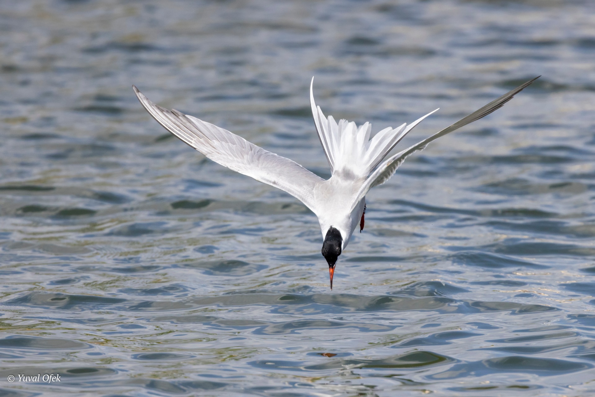Common Tern hunting while flying