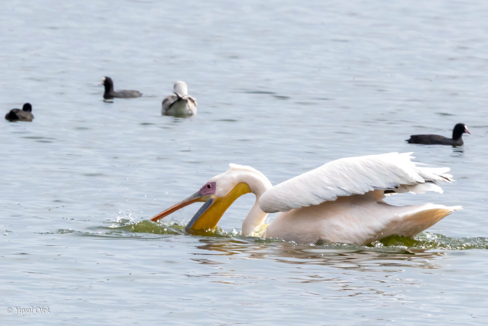 Great White Pelican fishing