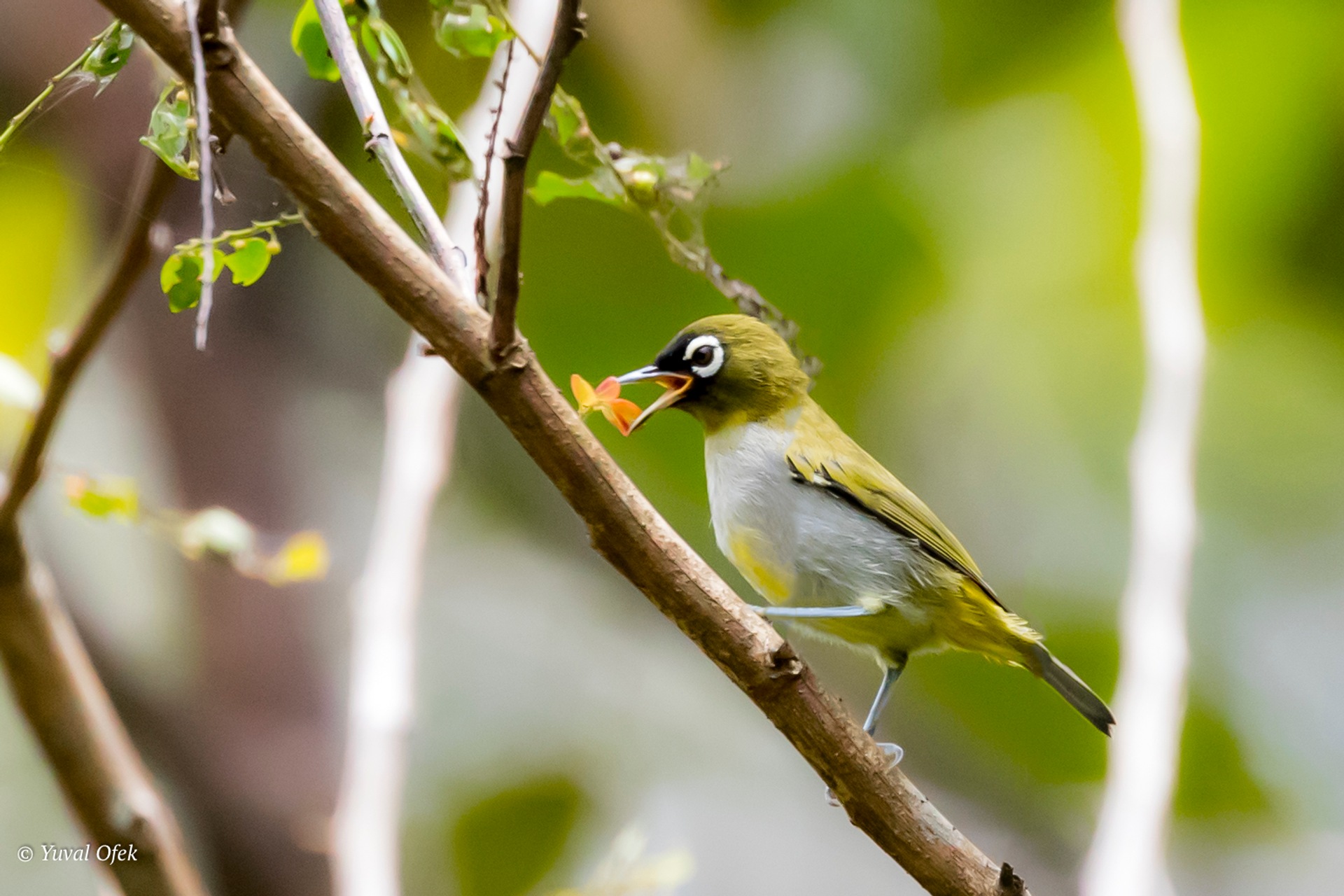 Oriental White-eye eating a flower