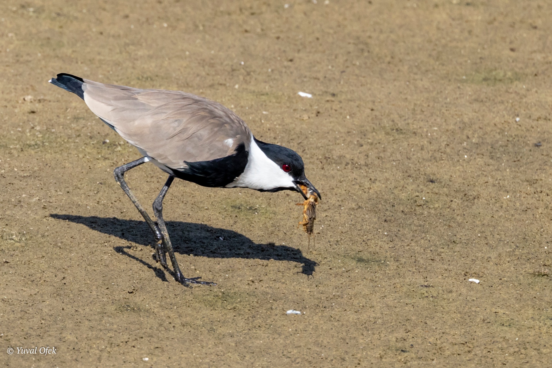 Spur-winged Lapwing eating a grasshopper