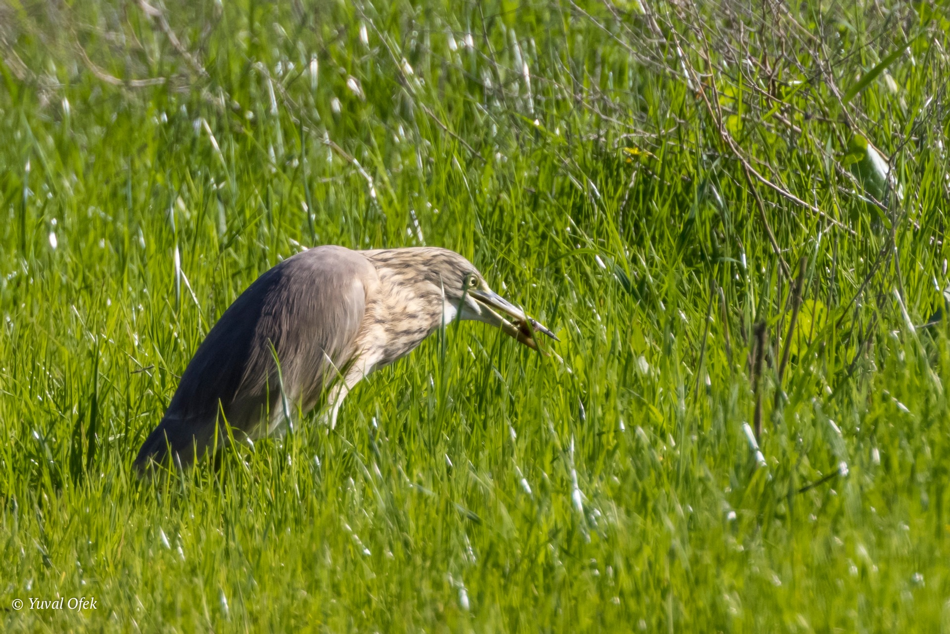 Striated Heron catching a crab. Eating it will be more challenging