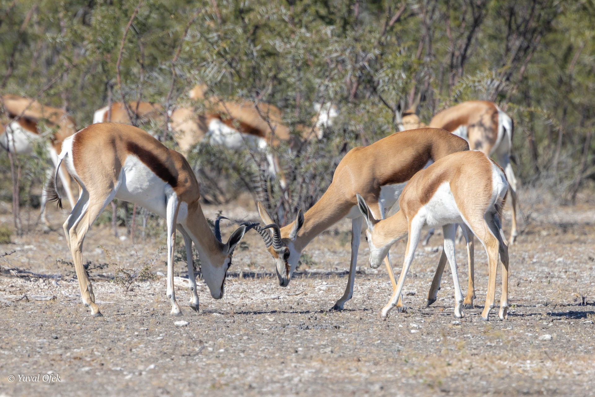 Springbok herd escaping a lioness