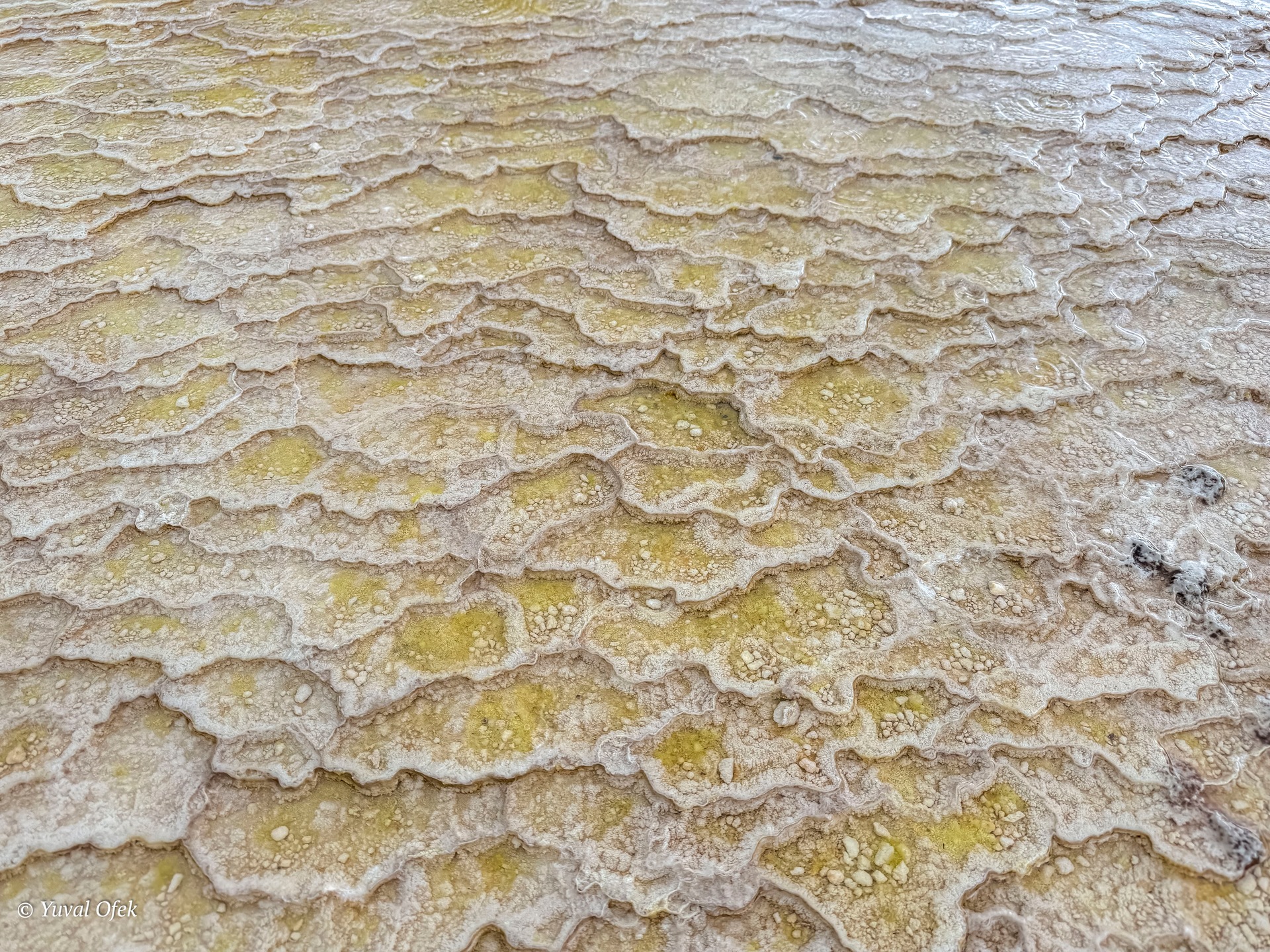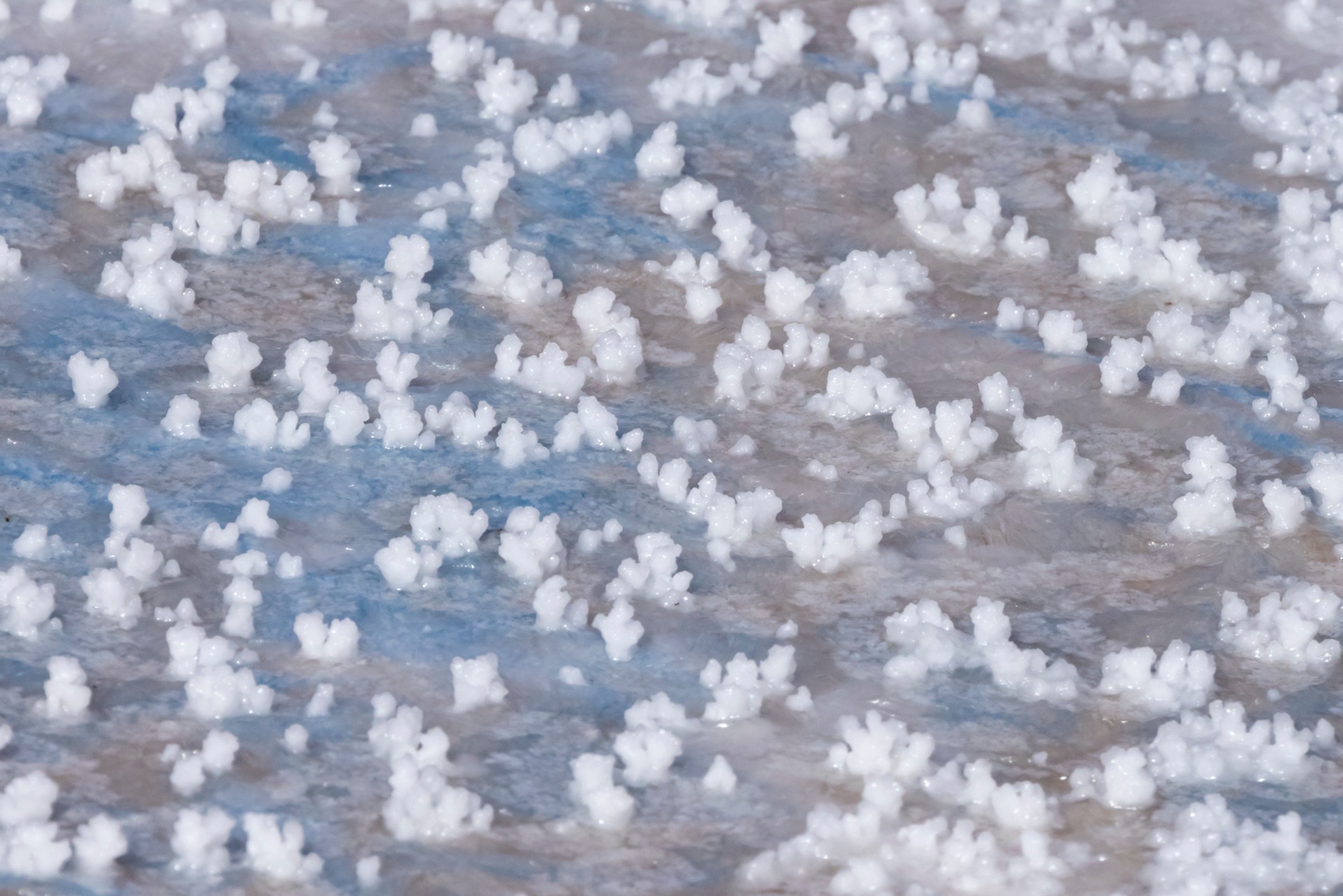 Salt crystals drying in a pool of salt water