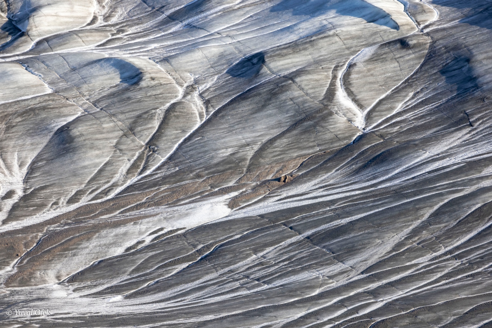 Water lines on a glacier's surface